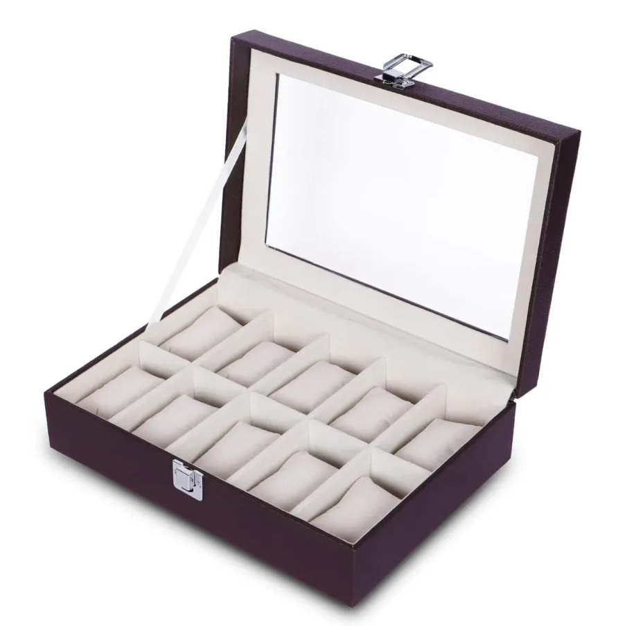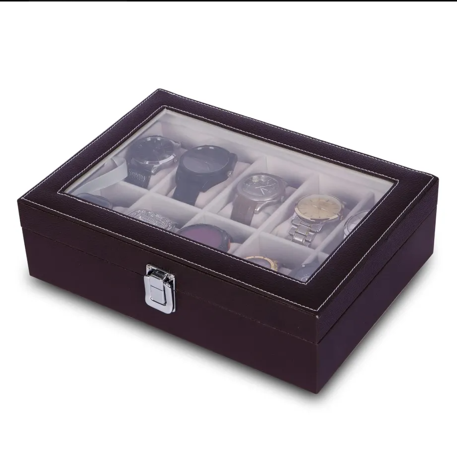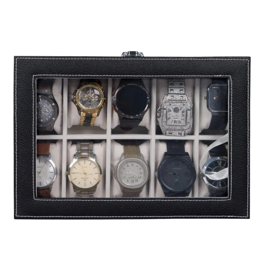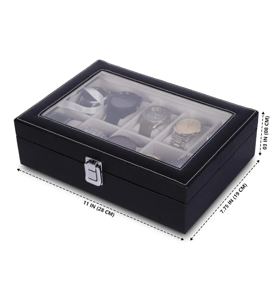 PU Leather 10-Slot Watch Box – Perfect Gift for Watch Lovers Black & Brown