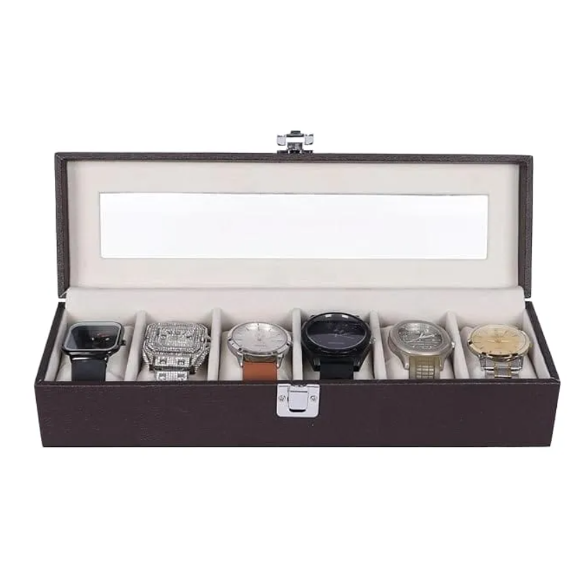 Features 6 spacious slots, each with a removable soft cushion to securely hold watches of any size — from classic dress watches to modern smartwatches. -