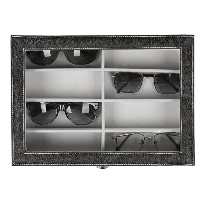 8 Spacious Compartments: Designed to hold up to 8 pairs of sunglasses or eyeglasses, each slot offers ample space to prevent scratches and keep your eyewear neatly arranged.