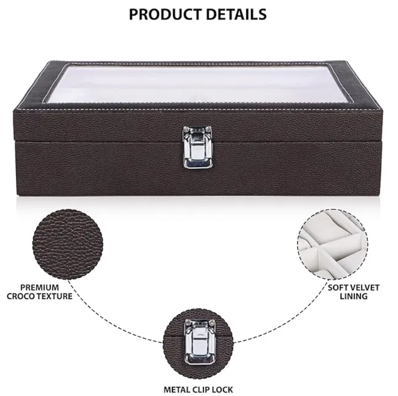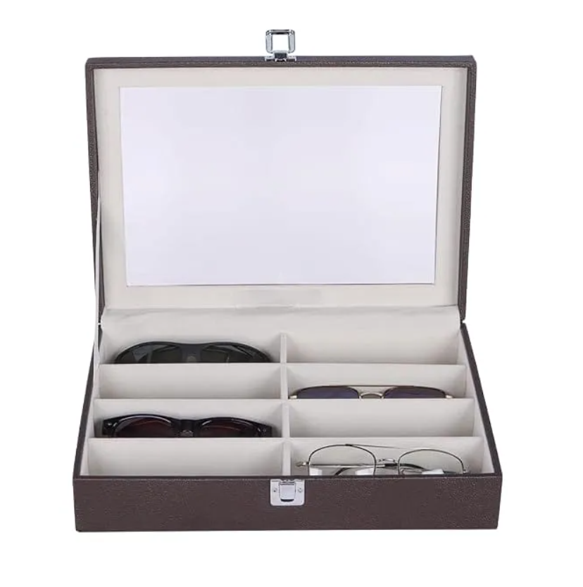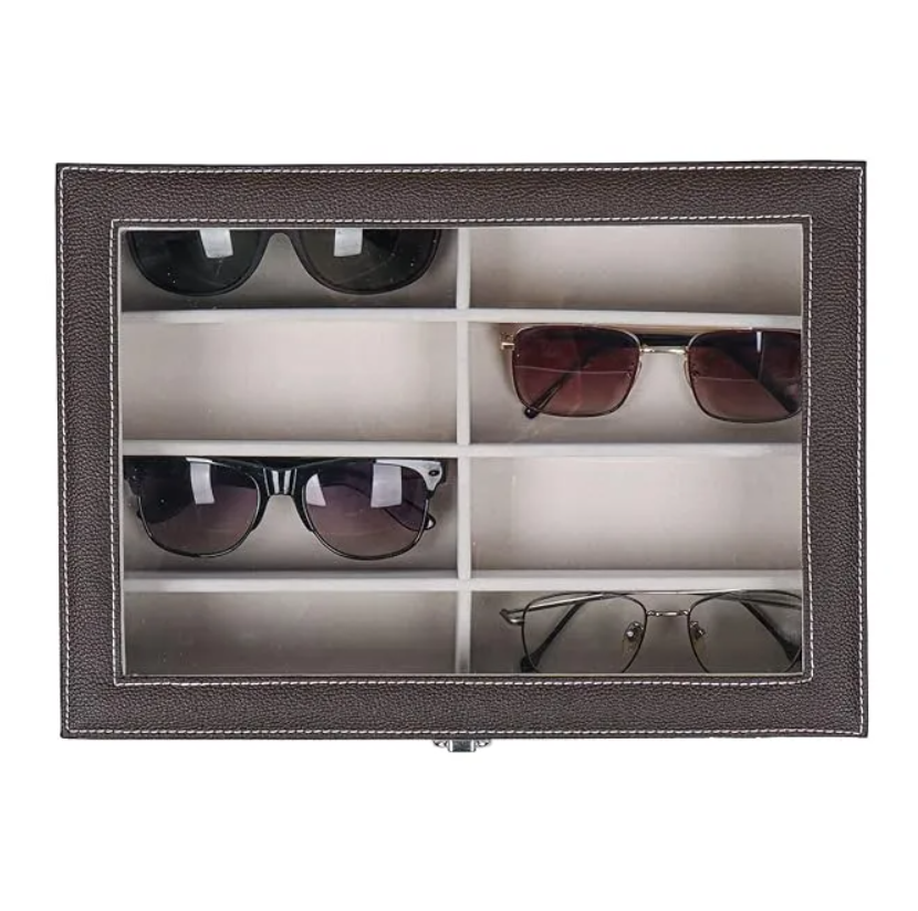 PU Leather 8-Slot Sunglasses Box – Perfect Gift for Sunglasses Lovers Black & Brown